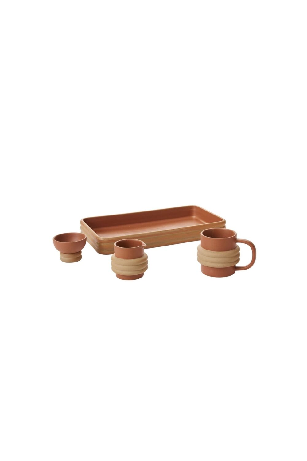 Las curvas enrolladas de terracota color canela sobre la jarra Anillo de arcilla moteada, apta para alimentos, añaden una calidez rústica y moderna de mediados de siglo a la decoración. Úselo para café, crema o flores y combÃnelo con otras piezas de Anillo Collection para obtener un elegante arreglo para servir.
