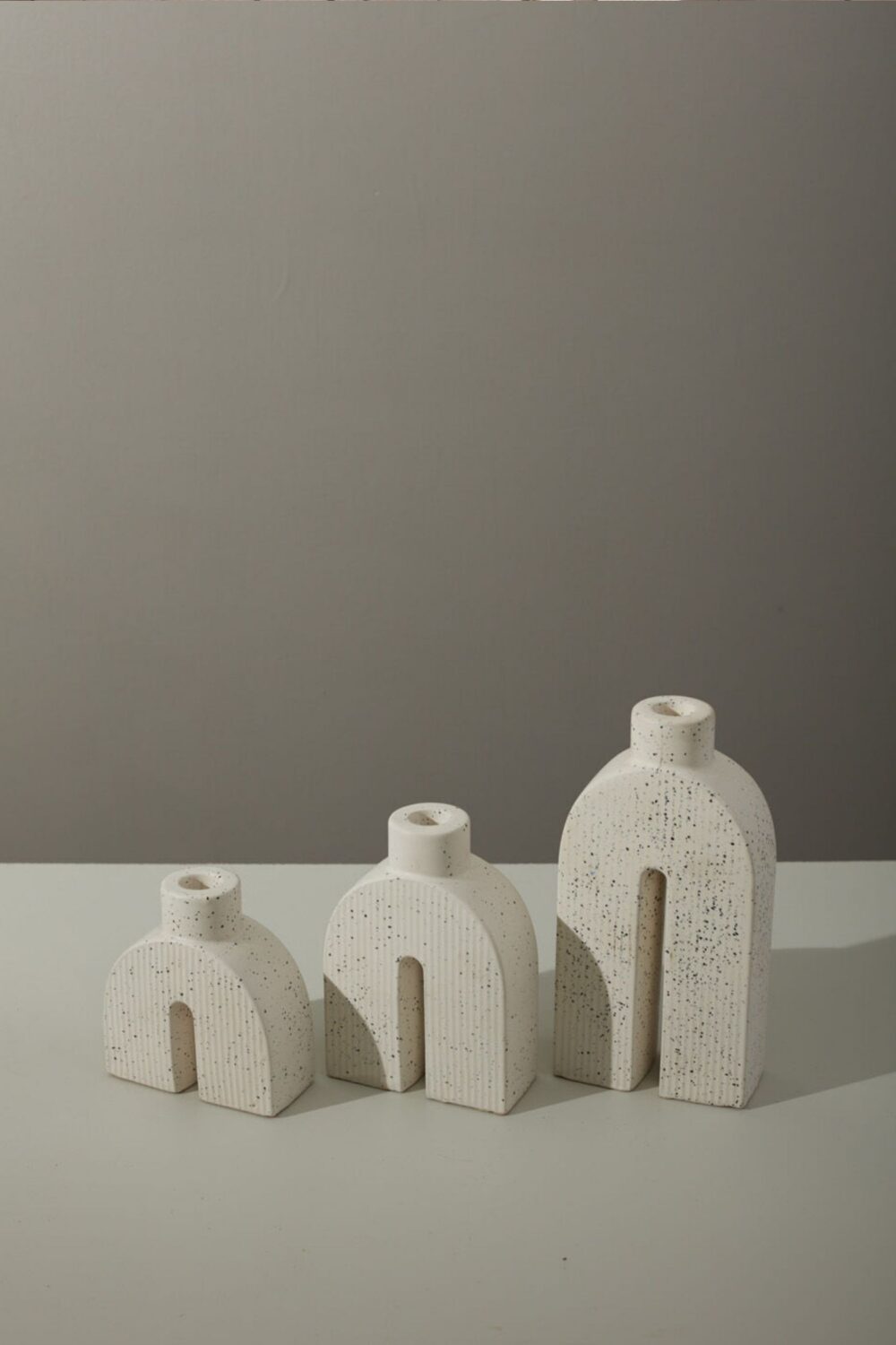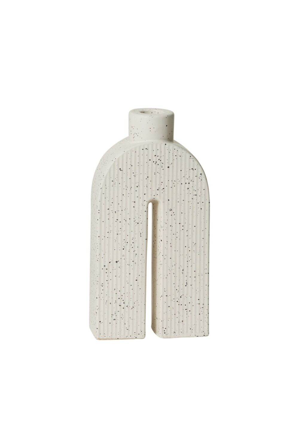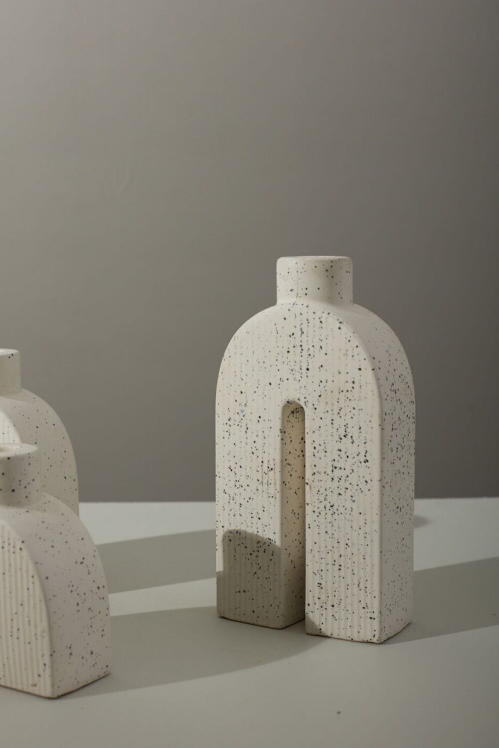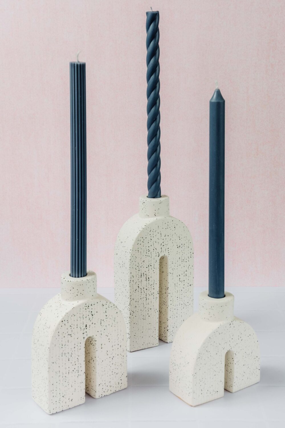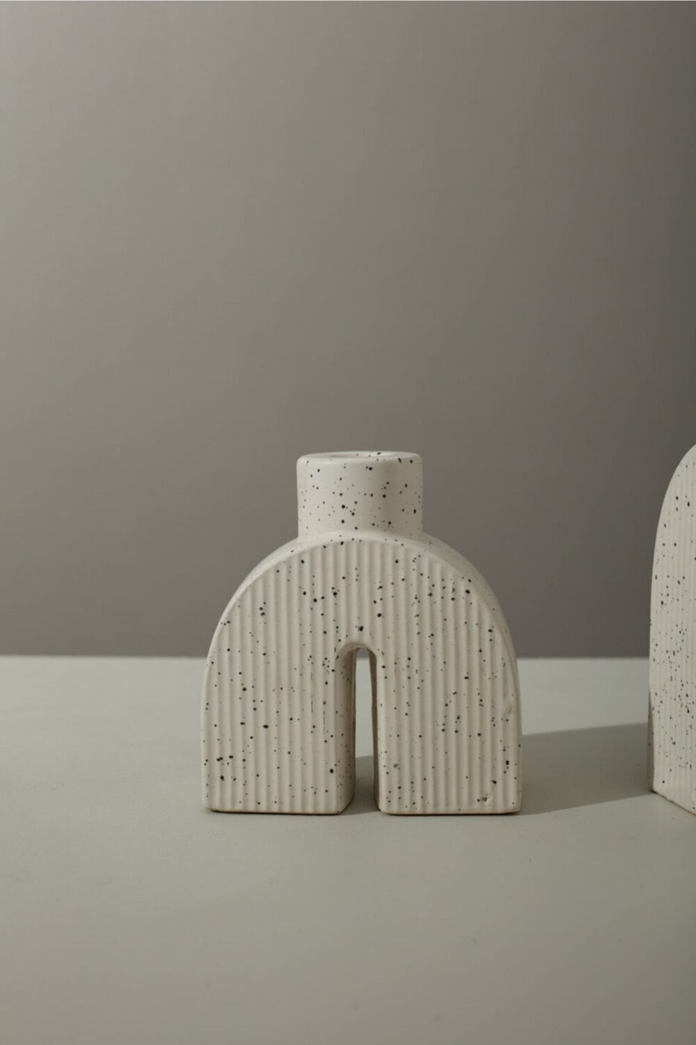 El candelabro Trefoil, conscientemente moderno, tiene forma con arcos de moda, con un efecto moteado creado con manchas negras de esmalte sobre cerámica de color marfil. Diseñado para sostener una vela cónica, el candelabro Trefoil es perfecto para completar la mesa de su próximo evento o decorar su hogar.